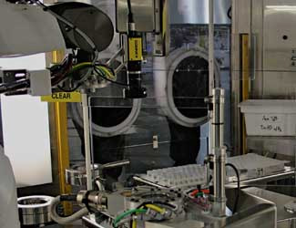 其基本概念是提供一種能夠在兩個機(jī)器人的操作范圍內(nèi)定位一種特別容器的即用“穴”的系統(tǒng)。尚菱視界的 In-Sight® Micro 視覺系統(tǒng)被用于精確定位各個容器和限位器,并在處理前為機(jī)器人提供這些位置。此方法允許通過加載新機(jī)器人程序、更換產(chǎn)品載板和指示機(jī)器人更換手臂末端工具而從一種容器類型或尺寸快速轉(zhuǎn)換到另一種。所有工藝中的接觸部件均使用一次性材料,這樣也縮短了更換時間并消除了交叉污染的風(fēng)險。